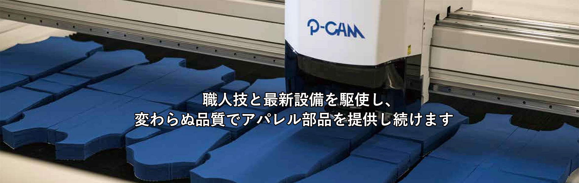 弊社は、CAD/CAM(自動裁断機)と自動縫製機器を駆使し、アパレル業界でポケットや衿、袖などの部品の精密裁断及び縫製を行う会社です。 長年の経験と技術力を活かし、高品質かつ精密な商品を提供しております。 昨今、付属材料だけでなく、表地裁断も手掛け、また、ノンアパレル業界でのフィルター、帽子の芯、靴磨き、ロボットスーツ、洗車用クロス等の多層裁断(カッティング)も行っております。 お客様に合わせたカスタマイズにも柔軟に対応し、製品の品質管理にも徹底したこだわりを持っています。 最新設備と熟練技術により、効率的かつ高精度な作業を実現、アパレルメーカー様やパタンナー様との信頼関係を気付き、常にお客様のニーズを超える商品をお届けしビジネスのお手伝いができればと考えております。